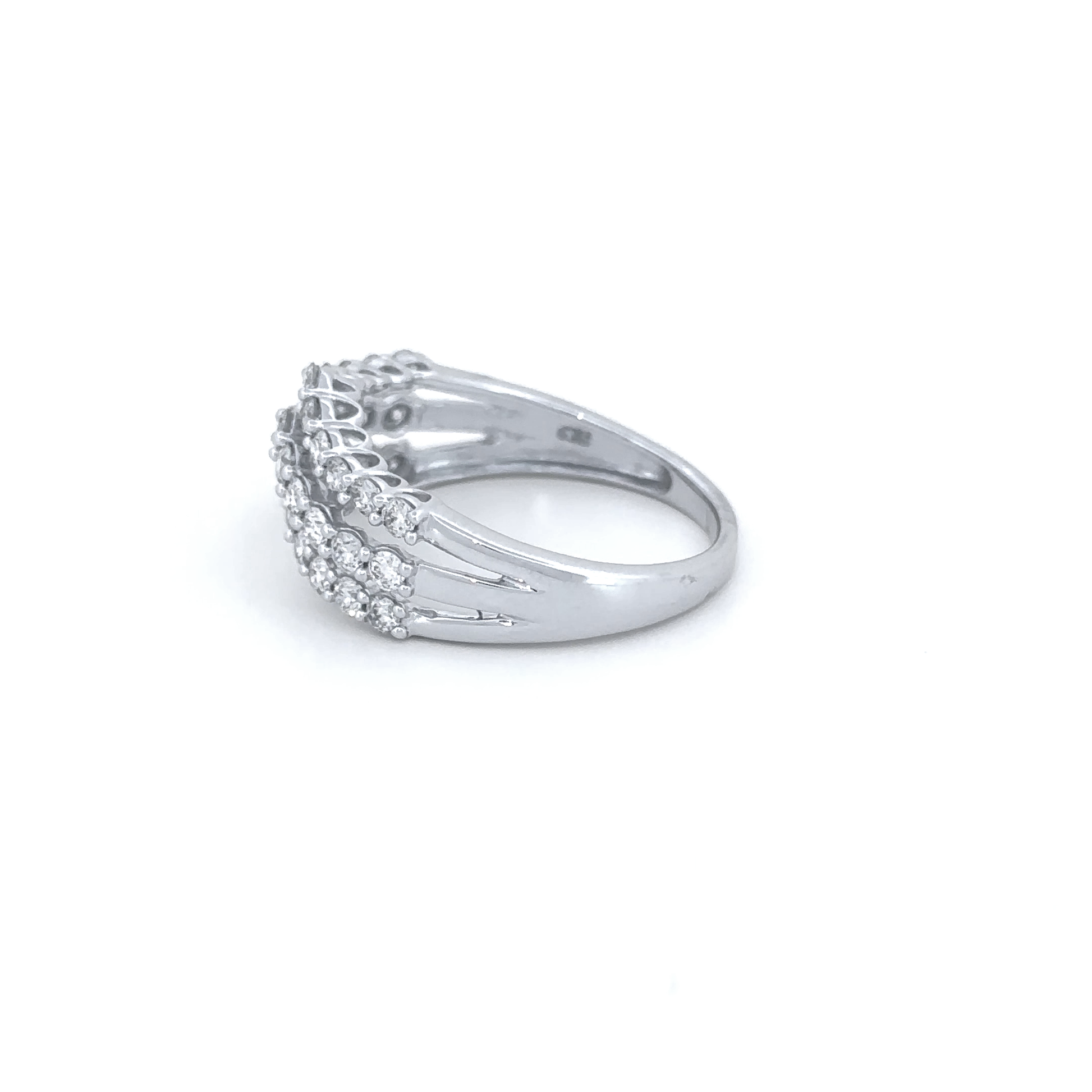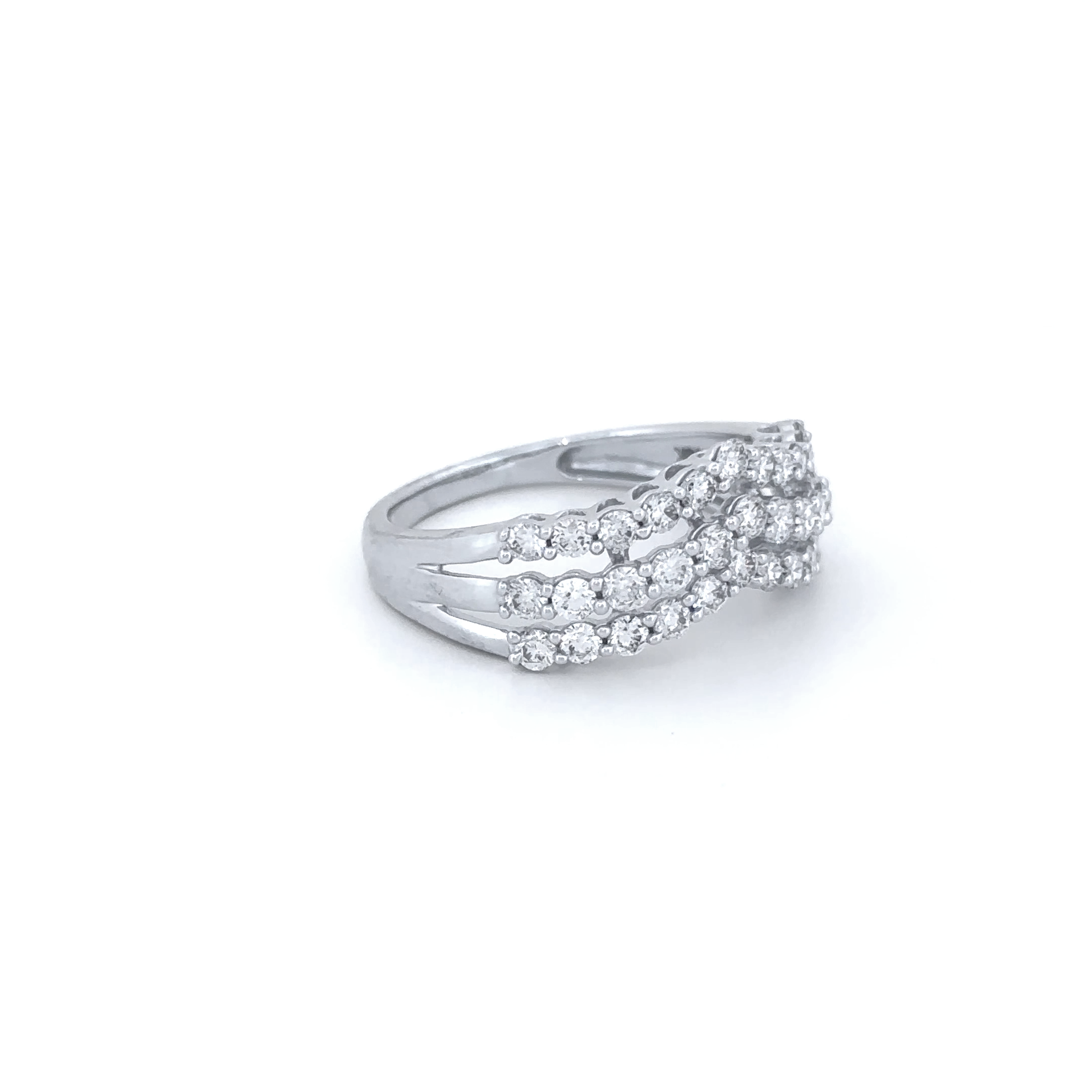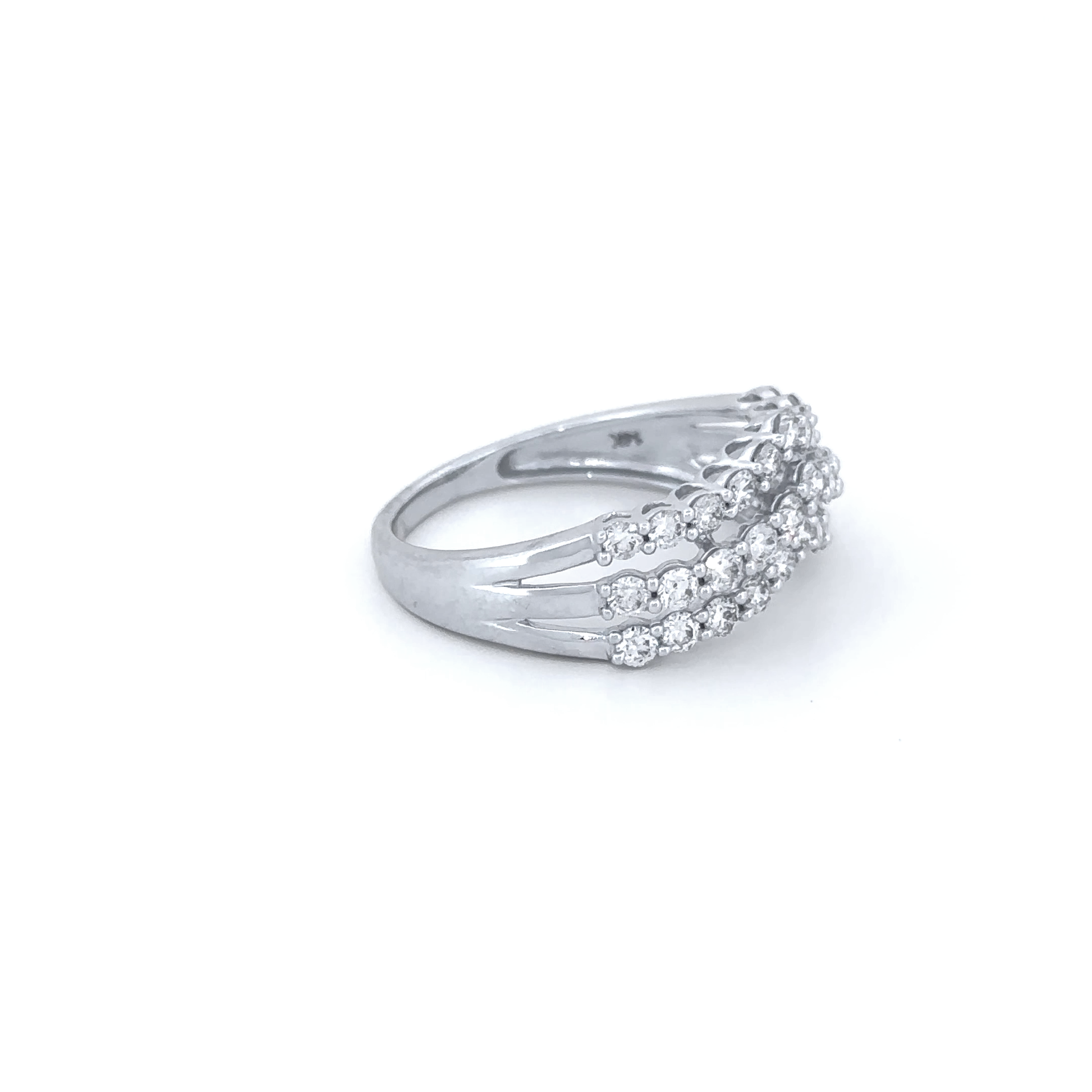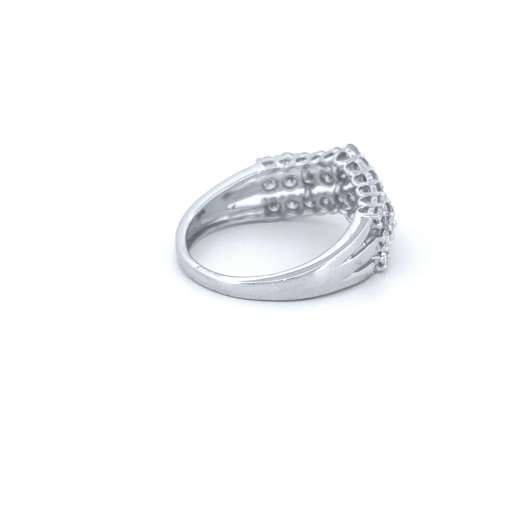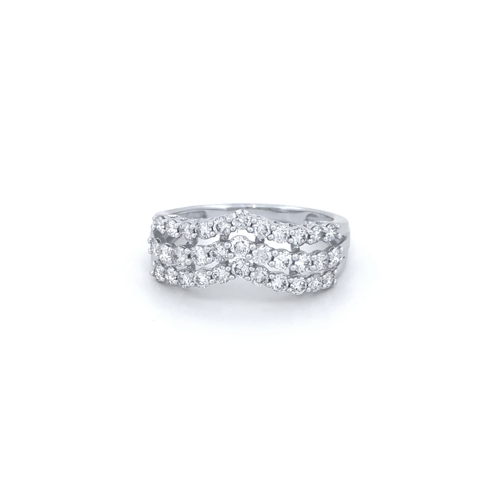 Enhance your jewelry collection with this exquisite multi-row diamond ring. Crafted from luxurious 14kt white gold, this ring features a captivating wave design adorned with a stunning array of diamonds. The layered rows of brilliant diamonds create a dazzling effect, reflecting light from every angle. Perfect for adding a touch of elegance and sophistication to any outfit, this ring is a versatile accessory for both everyday wear and special occasions. The meticulous craftsmanship and timeless design make this piece a cherished addition to any jewelry collection. Treat yourself or a loved one to the luxury and beauty of this radiant diamond ring.